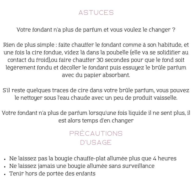 - Pour votre sécurité ne pas laisser une bougie allumer sans surveillance !