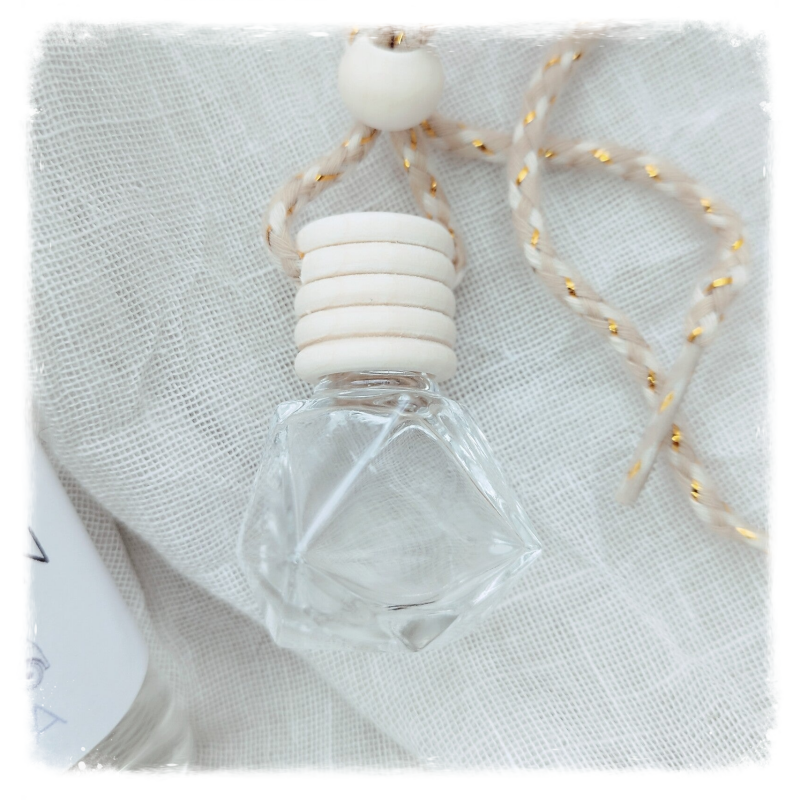 - accrocher la fiole dans votre voiture, veiller à serrer le nœud de façon à ce que le flacon se balance mais n'entre pas en contact avec le pare-brise.